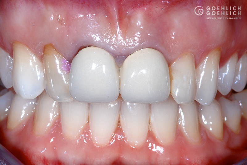 Zwei vollkeramische Frontzahnkronen (mittlere Schneidezähne) und