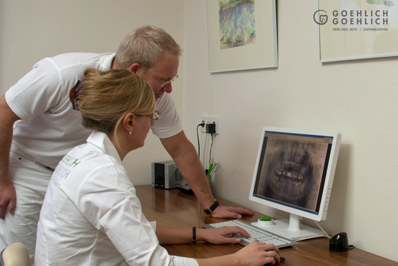 Röntgenuntersuchungen werden in der Zahnheilkunde häufig benötigt. Durch den Einsatz der Computertechnik ist es uns heutzutage möglich, auf den herkömmlichen Röntgenfilm zu verzichten und stattdessen das Bild von einem Röntgensensor digital aufnehmen zu lassen. Das Bild steht dann sofort auf dem Bildschirm zum Betrachten zur Verfügung.